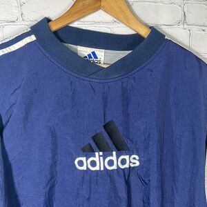 Adidas Old School L 90s Pullover Track Jacket size L Large 3 Stripes Sleeves Navy Blue