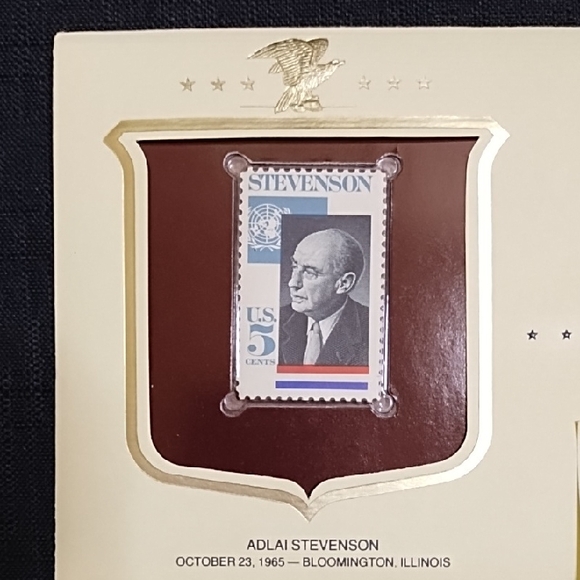 Vintage Adlai Stevenson Commemorative Stamp Display "Historic Stamps of America"