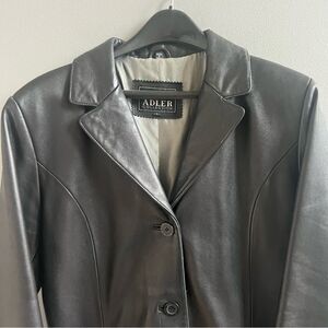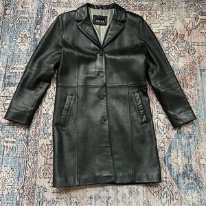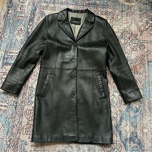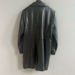 Vintage Adler Collection Long Genuine Leather Coat Size Large Black Button Down