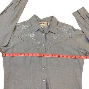 Vintage Adobe Rose Western Style Blue Shirt Ladies Large