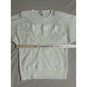 Vintage Adolfo Batwing Sweater Intricate Knit Design Acrylic Women's L Ivory