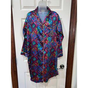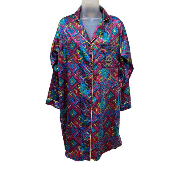 Vintage Adolfo Classics Womens Satin Pajama Shirt With Retro Geometric Print & C