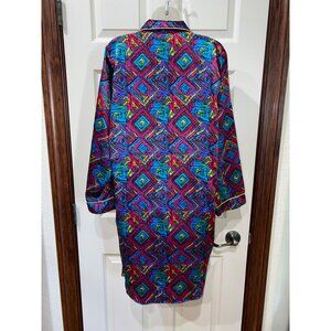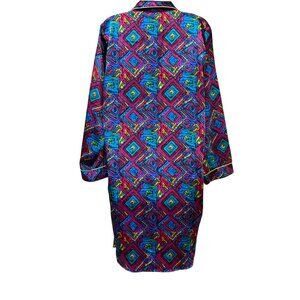 Indulge in luxurious comfort with this vibrant Adolfo Classics satin pajama shirt. Its retro geometric design and silky texture exude elegance for stylish loungewear.