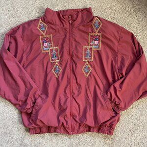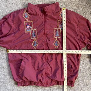 Vintage Adolfo Sport Embroidered Arabian 90s Elephant Orange Zip Jacket Women XL