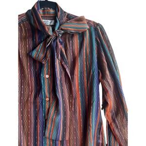 Vintage Adolph Schuman for Lilli Ann Bow Retro Secretary Striped Blouse LARGE