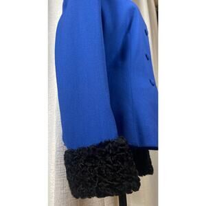 Beautiful fully lined vintage, cobalt blue, single-breasted, six button blazer. Fur collar and sleeve cuffs.