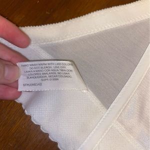 Beautiful bra! Great condition. Only thing to note is the j side has some light marks on it, could possibly launder out by bough I haven’t tried. It’s on the inside tho so it doesn’t show!m/ detract from bras looks.