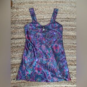 Vintage Adonna Medium Purple Paisley Y2K Slip Dress with Keyhole Cutout
