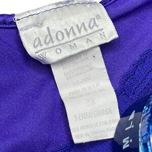 adonna woman | adonna 3x | plus size nightgown | purple nightgown | lace nightgown | long nightgown | sleeveless gown | silky nightgown | womens sleepwear | plus size lingerie | lace trim gown | v neck nightgown | made in usa | vintage style nightgown | purple gown | womens night dress | bedtime gown | lounge wear | nightie | sleep gown |