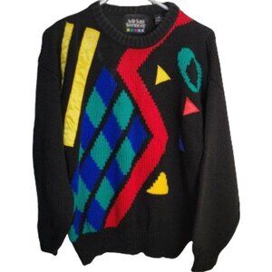 Vintage Adrian Spenser Pullover Knit Sweater Abstract Design Black Red M