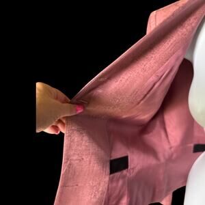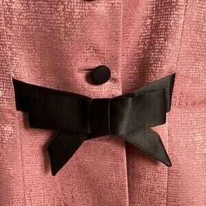 This vintage Papell Petites 100% silk jacquard blazer is a rich dusty rose jewel tone. Featured front fabric buttons and unique black bow toggle closure. Provides a structured silhouette, and is fully lined. Perfect for adding a sophisticated pop of color to your wardrobe. In excellent condition with no flaws noted. Size tag was removed but this is from my own closet and was labeled as a 10P. Please see measurements for best fit.