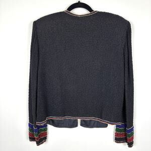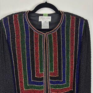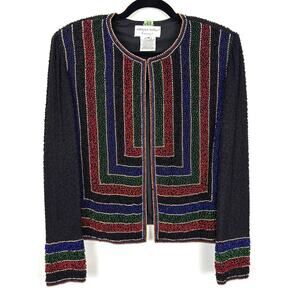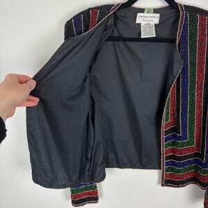 Vintage Adrianna Papell 100% Silk Beaded Bolero Evening Jacket Medium stripe