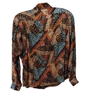Vintage Adrianna Papell 100% silk geometric print blouse 12 career office top