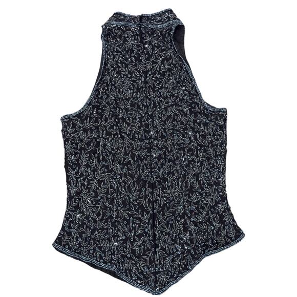 Vintage Adrianna Papell Boutique Evening Beaded Silk Top Size 8 Y2K 90s 00s