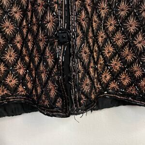 Vintage Adrianna Papell Evening Silk Beaded Embroidered Jacket Black Copper S
