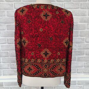 Vintage Adrianna Papell Evening Silk Beaded Jacket Small Formal Party *flaws
