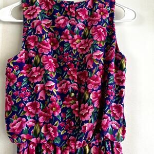 Vintage Adrianna Papell Maxi Dress 100% Silk Blouson Floral Tropical Pink 4P
