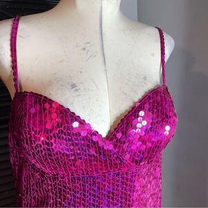 Vintage Adrianna Papell Sequin Pink Long Sweetheart Slip Dress Gown 12