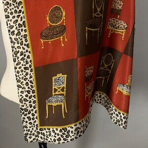 Vintage Adrienne Vittadini silk square scarf with chairs and leopard print design.