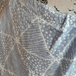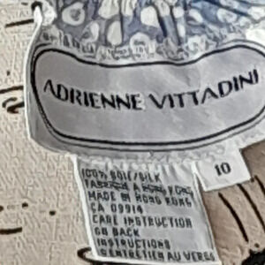 Vintage Adrienne Vittadini Silk Wrap Skirt Loved Size 10 100% Silk. Blue/grey geometric design with white circles. Approx. Measurements: Waist 28" Length 23". Pet friendly home.