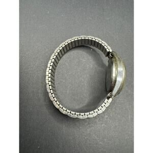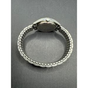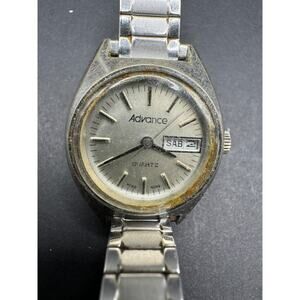 Vintage Advance Analog Day/Date Quartz Watch Silver Tone Metal Stretch Band