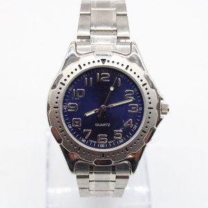 Vintage Advance Watch Mens Silver Tone Stainless Steel Classic Blue Slim Dial