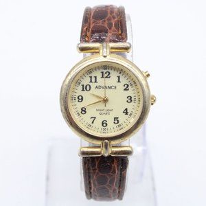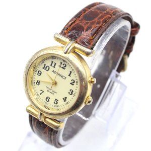 Vintage Advance Watch Womens Gold Tone Stainless Steel Brown Leather Band