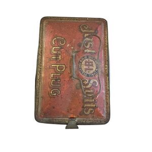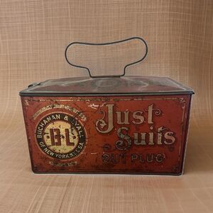 Vintage Advertising Tin Just Suits Cut Plug Tobacco Lunch Box with Latch