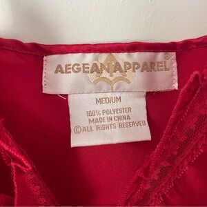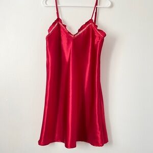 Vintage Aegean Apparel Elegant Red Satin Lace Trim Slip Dress Coquette Girl M