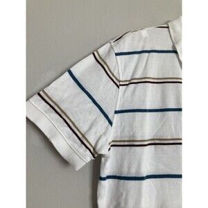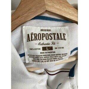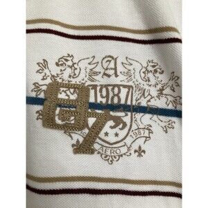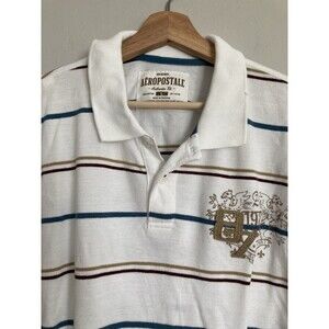 Vintage Aeropostale 1987 Logo Polo Shirt LARGE Men White Stripe Short Sleeve