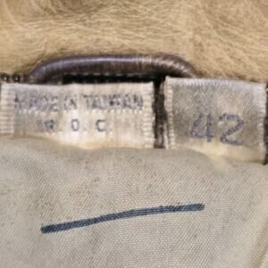 The Vintage Aeropostale Brown Distressed Leather Bomber Aviator Jacket in size 42 is a classic and stylish piece for men. Made from leather with a spread collar and full zip closure, this mid-length jacket features a lined interior and polyester insulation, perfect for colder seasons. The retro design with accents like a zipper closure and 80s-inspired theme makes it a versatile option for casual or party occasions. This designer jacket from Aeropostale is a timeless addition to any wardrobe, showcasing a blend of aviator and USA-inspired style.