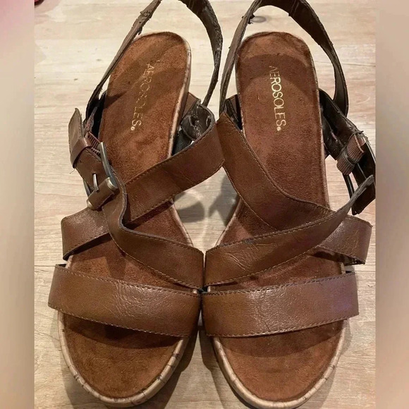 Vintage Aerosoles Size 9 Strappy Sandal side buckle leather suede