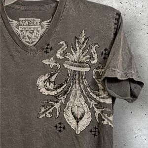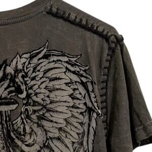 Vintage Affliction RAW STATE Fleur de Lis Wings Gray Shirt Black Stitch Detail M