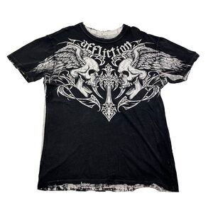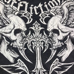 Vintage Affliction T Shirt Double Sided Size 2XL Cross Skulls Grunge Skate Made In USA.