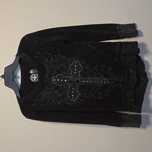 Vintage Affliction Women Cross Moto Long Sleeves Top Sweater