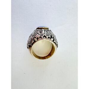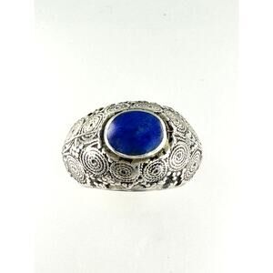 VIntage Afghan Lapis Lazuli Handmade Silver Tall Hollow Ring