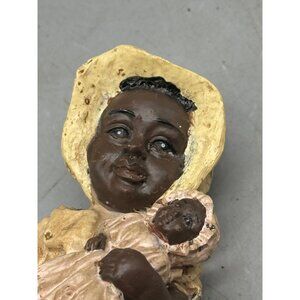 Vintage African American Figurine Child Holding Doll Yellow Bonnet Dress 3.75" R