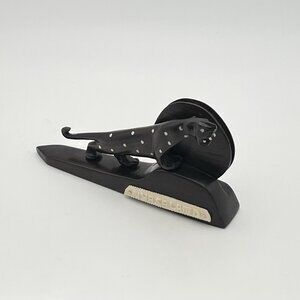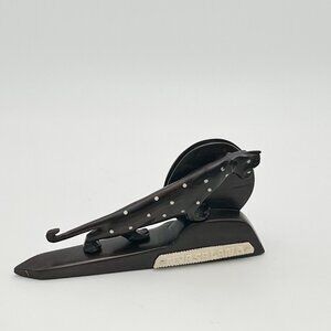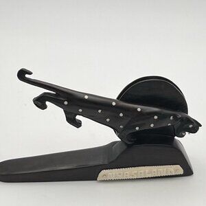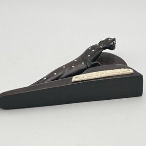 Vintage African Leopard Toothpick Holder Nya Salano Dark Wood Folk Art 6” RARE