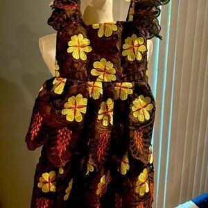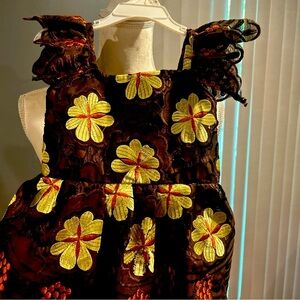 Vintage African Nigerian Voile Lace Brown Embroidered Dress Girl