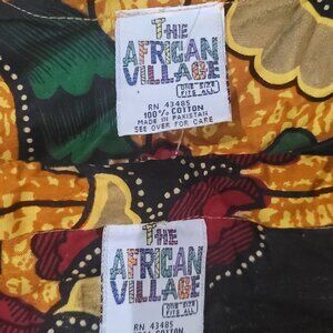 This vibrant vintage set from The African Village showcases a beautiful, intricate African print in multiple colors. Made from 100% cotton, this set includes a maxi dress and a matching skirt. The set is perfect for those who love to embrace cultural fashion with a touch of sophistication.