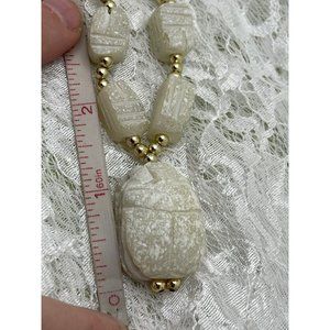 Vintage African Style Carved White Soap Stone Breaded Necklace. Measurements in pics. Preowned, little to no wear/use. No noticeable damage, discoloration or breaks. Clean, smoke-free home. Stone Jewelry