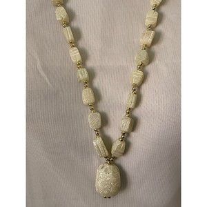 Vintage African Style Carved White Soap Stone Breaded Necklace