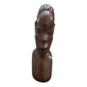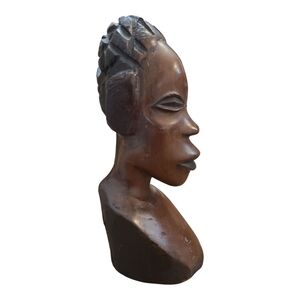 Vintage African Tribal Hand Carved Ebony Wood Woman Bust Sculpture Statue