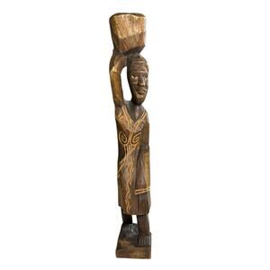 Vintage African Tribal Woman Carved Wooden Statue 12" Figure Folk Art Sculpture