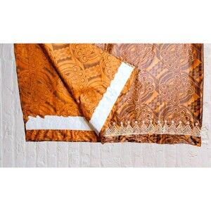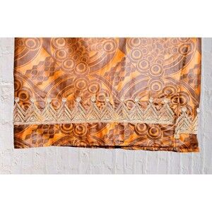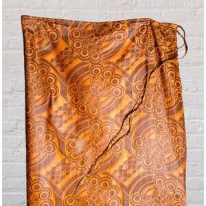 Beautiful vintage African wax print wrap maxi skirt in rich rust orange and gold tones. Made from breathable cotton with an adjustable tie waist for a flexible fit. A versatile skirt that works for everyday wear, festivals, vacations, or boho-chic styling.