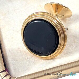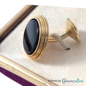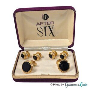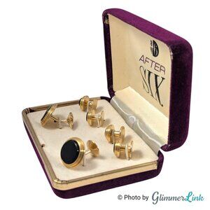Vintage After Six Gold Tone Black Stone Cufflinks and Shirt Stud Set in Box