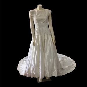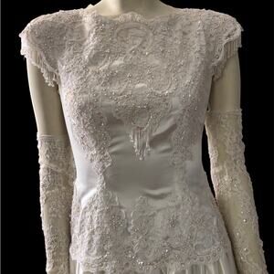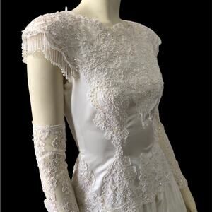 Vintage After Six Wedding dress with train & sleeveless gloves size 8
