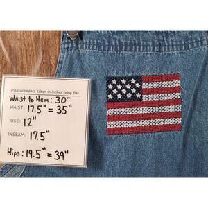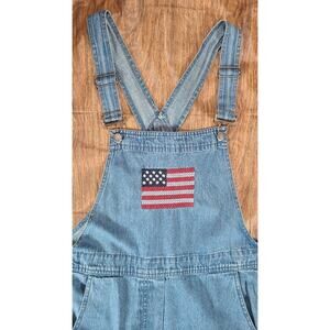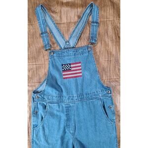 Vintage Agapo Bib Overalls Womens Med Crop Capri Embroidered Flag 4th July Y2K
