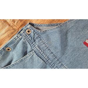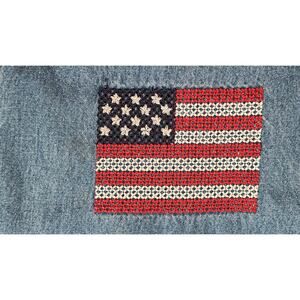 These Vintage Agapo Bib Overalls are a stylish choice for women who love the Y2K aesthetic. The embroidered flag design on the 4th of July adds a patriotic touch, while the relaxed fit and crop capri style make them perfect for the summer, fall, and spring seasons. These denim overalls feature a buckle closure, 4 pockets, and are made of cotton denim for a comfortable and durable wear. There are 2 light spots on the front by the waistline, they are so light that it's difficult to see in the photos. Overall, these overalls are in good condition. These overalls offer a unique and trendy look for any bohemian or hippie-inspired wardrobe.