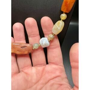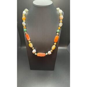 Vintage Agate Semi Precious Stone Necklace. Vibrant multicolored design. This piece has weight to it and a barrel clasp in the back. In like new vintage condition. Measures 21” in total. Drop is just over 10”.